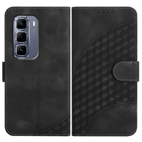 Funda de Cuero con Relieve Elefante para Infinix Hot 50 Pro+ 4G con Cordón (Negro)