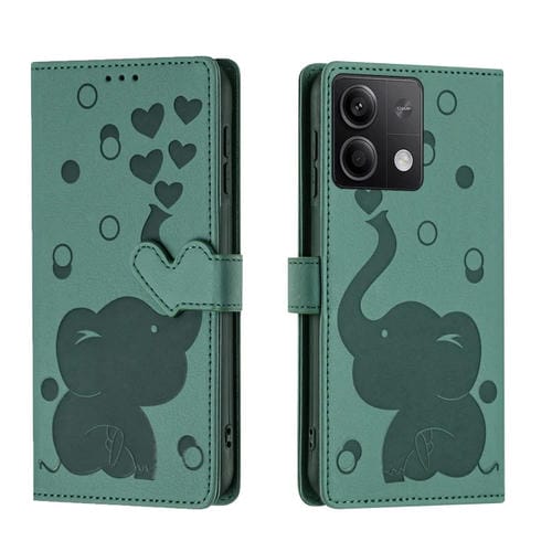 Funda de Cuero con Relieve de Elefante de Dibujos Animados para Redmi Note 13 5G (Verde)
