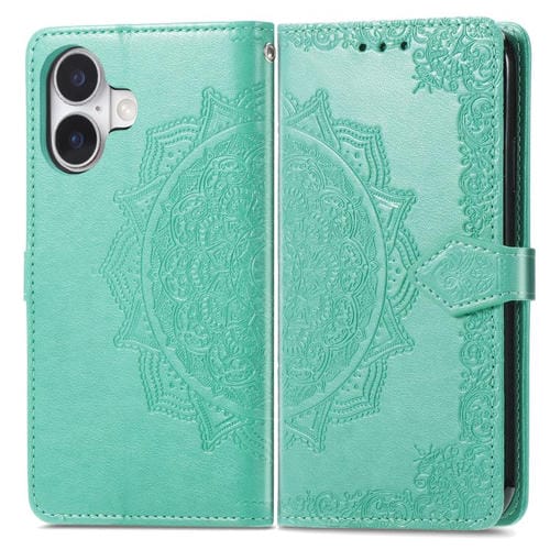 Funda de cuero con relieve de flor de mandala para iPhone 17 (verde)