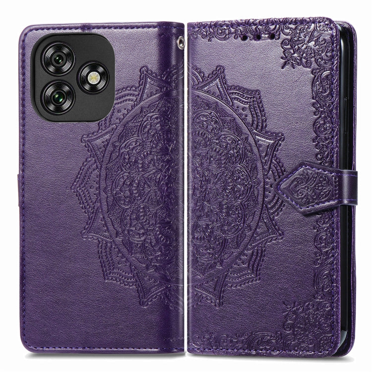 Funda de Cuero con Relieve Flor de Mandala para Teléfono Oukitel C53 (Morado)