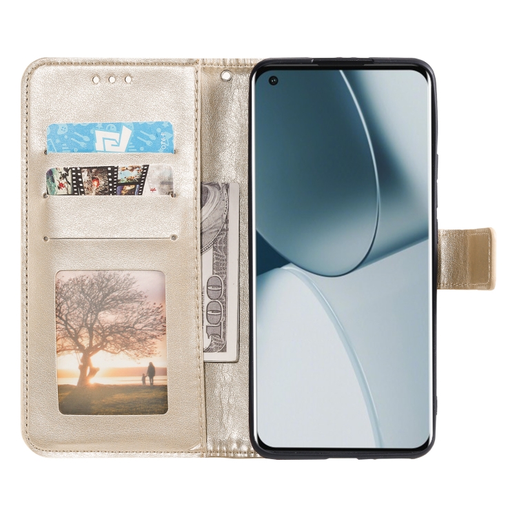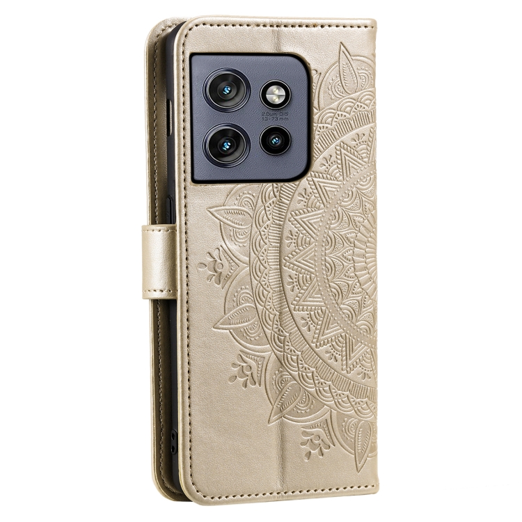 Funda de Cuero con Relieve Flor de Tótem para Motorola Edge 50 Neo con Cordón (Dorado)