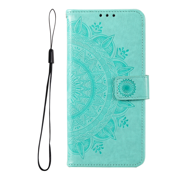 Funda de Cuero con Relieve de Flor de Tótem para Motorola Edge 50 Neo con Cordón (Verde)