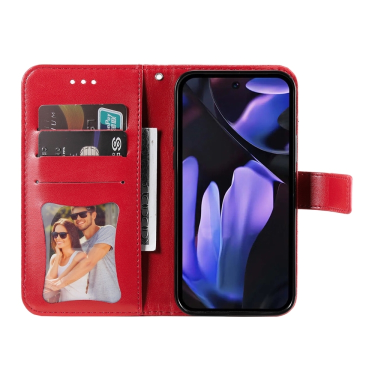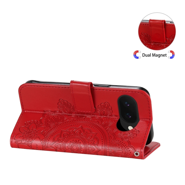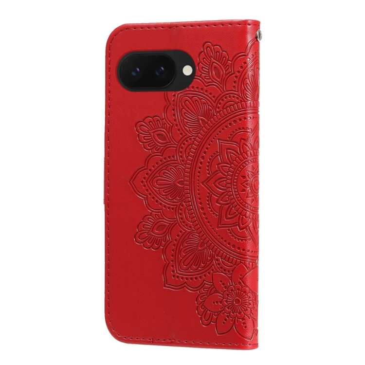 Funda de Cuero con Relieve de Flores de Siete Pétalos para Google Pixel 9A (Rojo)