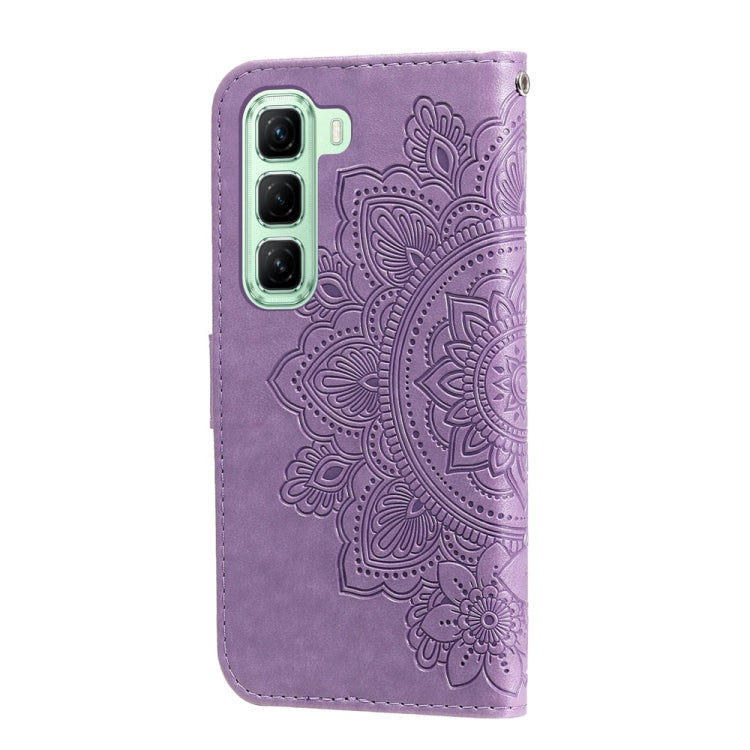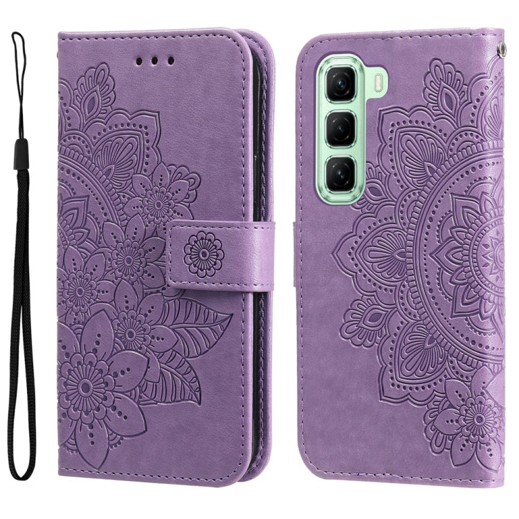 Funda de Cuero con Relieve de Flores de Siete Pétalos para Infinix Hot 50 5G (Morado Claro)