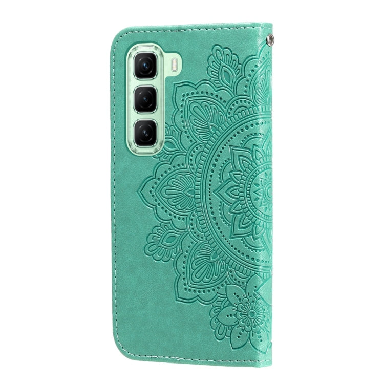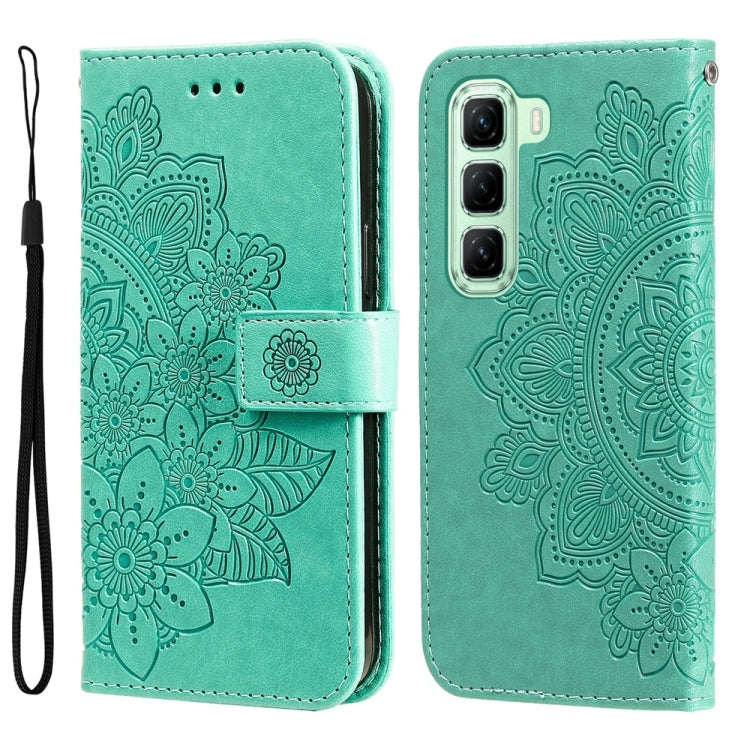 Funda de Cuero con Relieve de Flores de Siete Pétalos para Infinix Hot 50 5G (Verde)