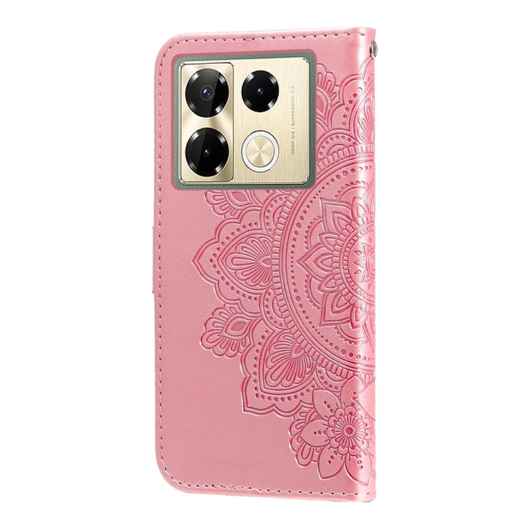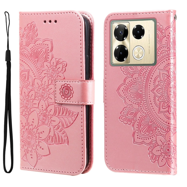 Funda de Cuero con Relieve Flores de Siete Pétalos para Infinix Note 40 Pro 4G/5G/Pro+ (Oro Rosa)