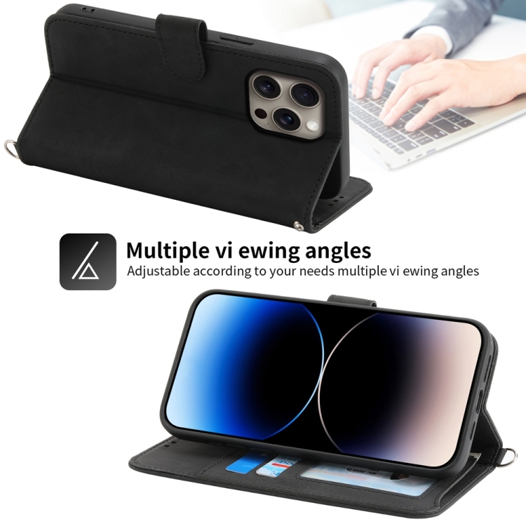 Funda de Cuero con Relieve de Flores para iPhone 16 Pro Max (Negra)