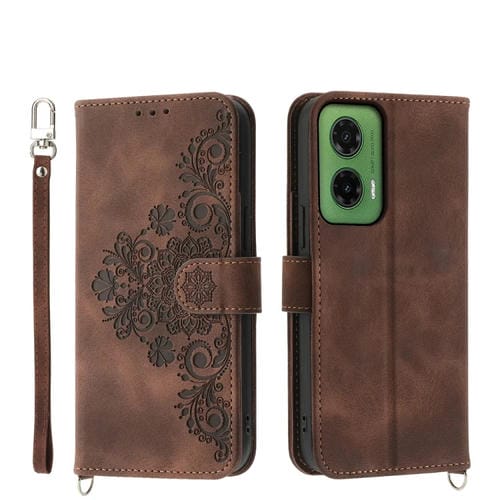 Funda de Cuero con Relieve de Flores para Motorola Moto G75 5G (Marrón)