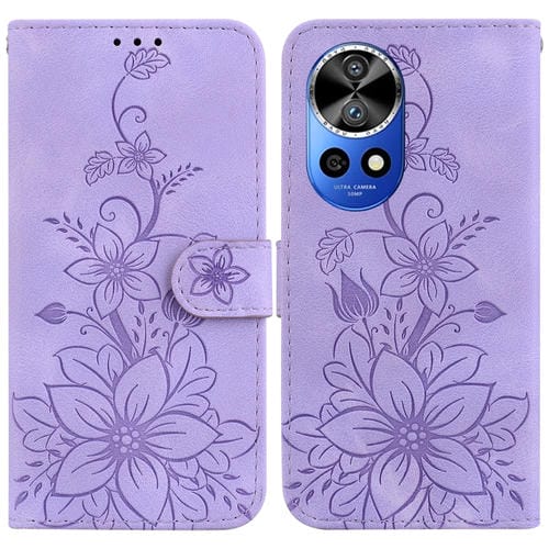 - 1x Funda de Cuero con Relieve de Lirio para Huawei Nova 12 Pro (Morado)