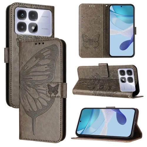 Funda de Cuero con Relieve de Mariposa para Redmi K70 Ultra 5G (Gris)