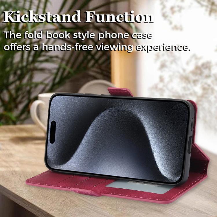 Funda de Cuero con Relieve de Mariposa y Flor de Amor de Ensueño para iPhone 15 Plus (Rojo)