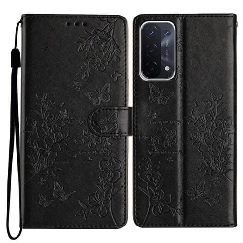 Funda de Cuero con Relieve de Mariposa y Flor para Oppo A74 5G/A54 5G (Negra)