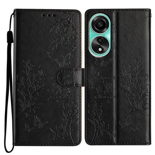 Funda de Cuero con Relieve de Mariposa y Flor para Oppo A78 4G (Negra)