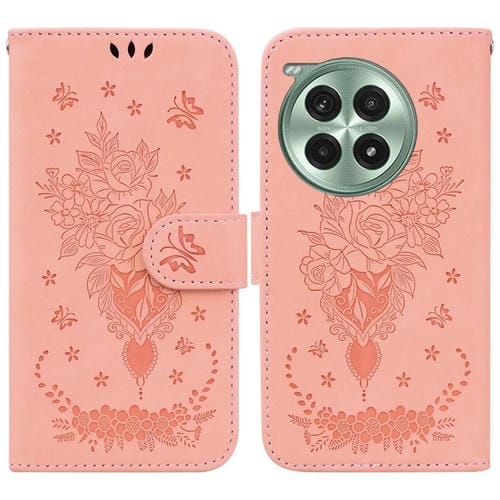 Funda de Cuero con Relieve de Mariposa y Rosa para OnePlus Ace 3 Pro (Rosa)