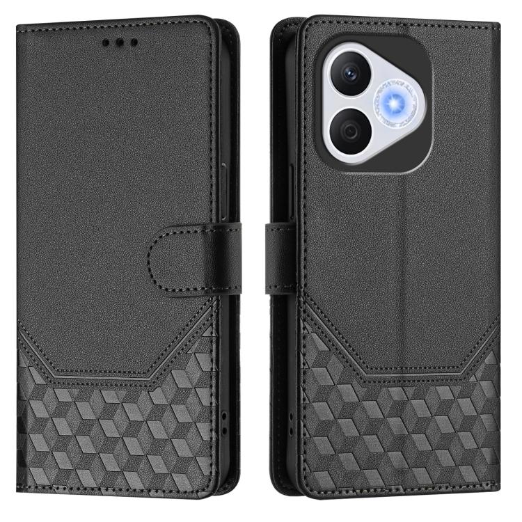 Funda de Cuero con Relieve de Panal Rfid para Honor 400 Lite (Negra)