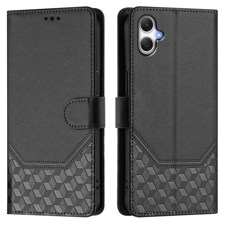 Funda de cuero con relieve de panal RFID para Samsung Galaxy A07 4G (negra)