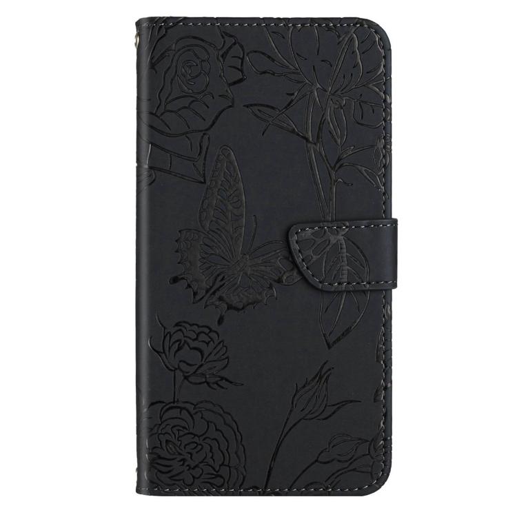 Funda de Cuero con Relieve Peonía y Mariposa para OnePlus 13R (Negro)