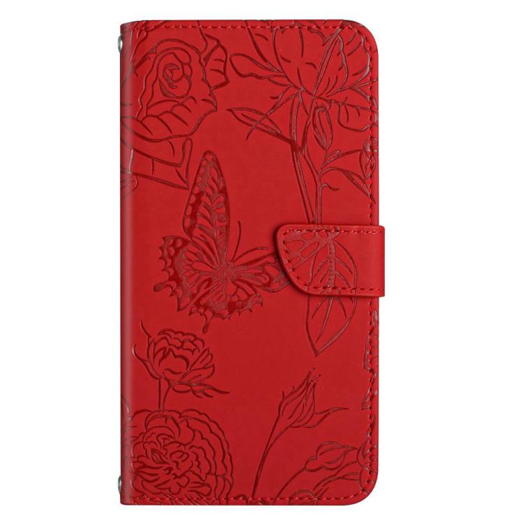 Funda de Cuero con Relieve Peonía y Mariposa para OnePlus 13R (Rojo)