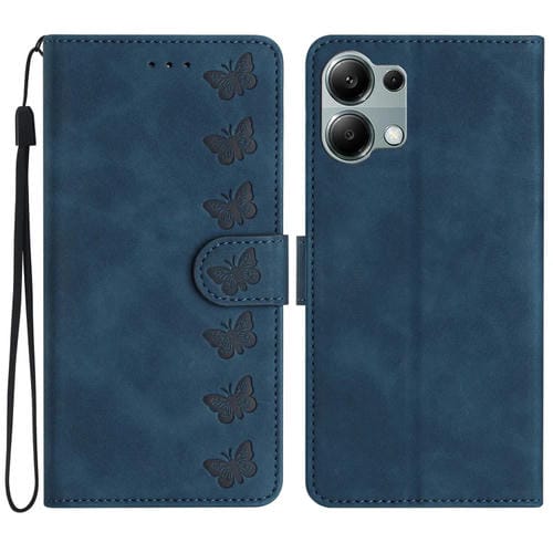 Funda de Cuero con Relieve de Siete Mariposas para Redmi Note 13 Pro 4G (Azul)