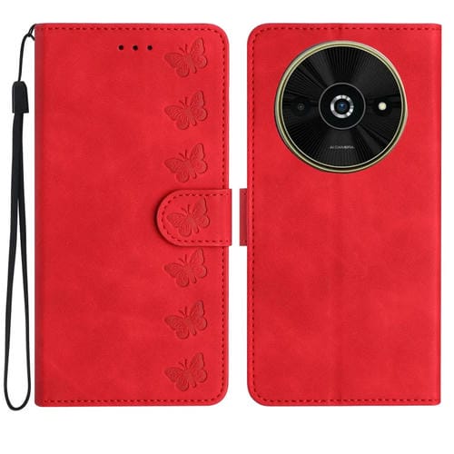 Funda de Cuero con Relieve de Siete Mariposas para Xiaomi Poco C61 (Rojo)