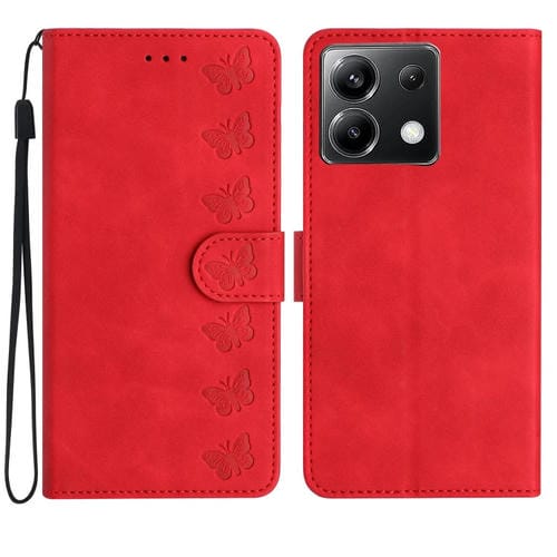 Funda de Cuero con Relieve de Siete Mariposas para Xiaomi Poco X6 (Rojo)