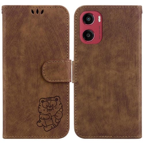 Funda de Cuero con Relieve de Tigre para Motorola Moto G05/E15 (Marrón)