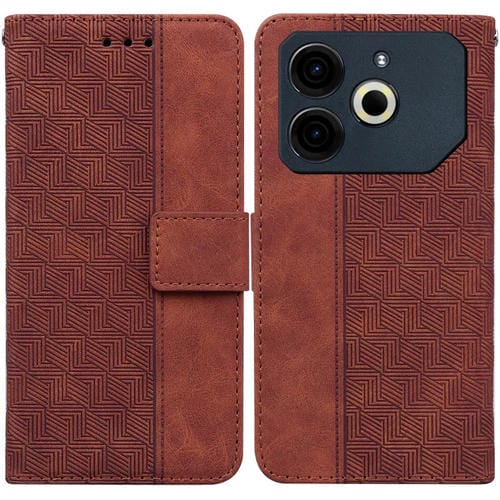 Funda de Cuero con Relieve Geométrico para Teléfono Tecno Pova 6 Neo (Marrón)