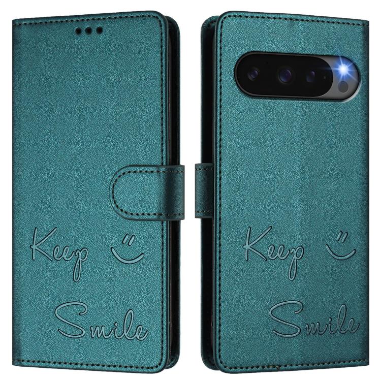 Funda de Cuero con Relieve Rfid para Google Pixel 10 Pro XL 5G (Verde Pavo Real)