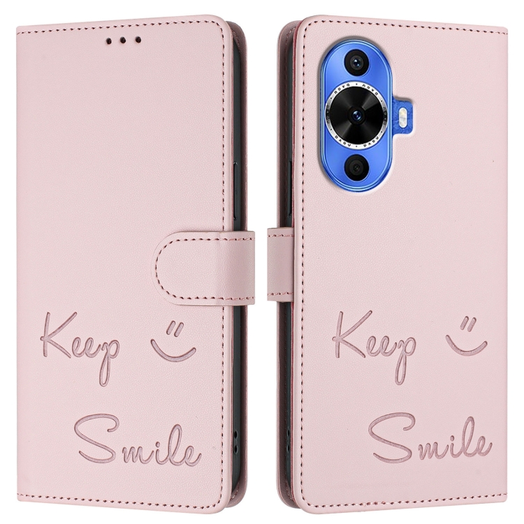 Funda de Cuero con Relieve RFID para Huawei Nova 12S 4G Global (Rosa)