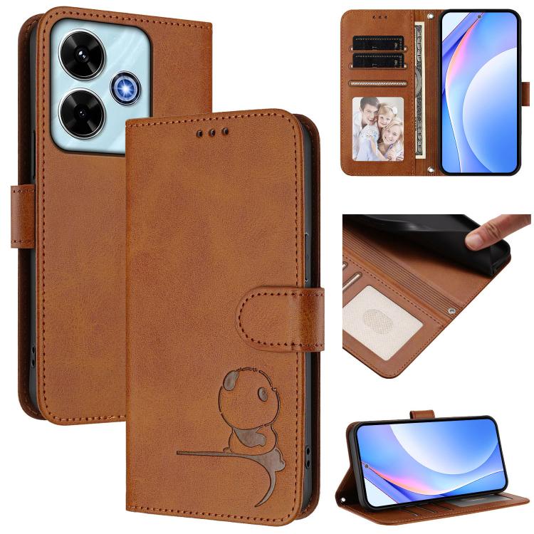 Funda de cuero con relieve RFID y cordón para Redmi 13x / 13 4G / Poco M6 4G (marrón)