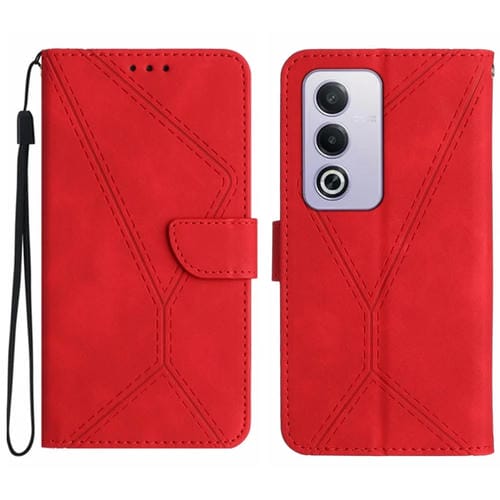Funda de Cuero con Relieve y Costuras para Oppo A3 Pro 5G India/K12X 5G Global (Rojo)