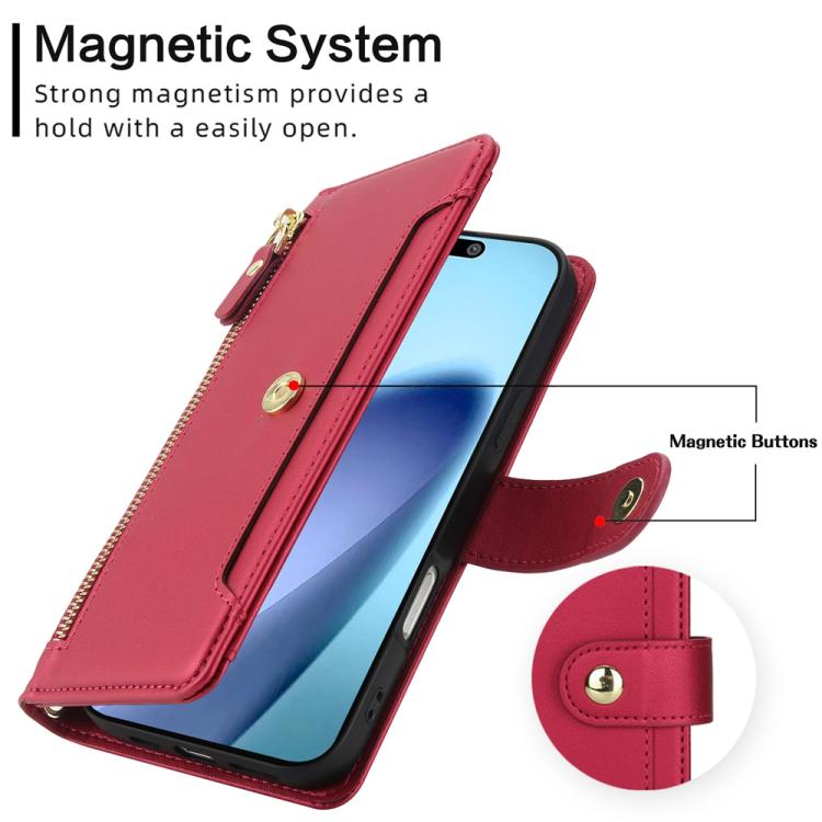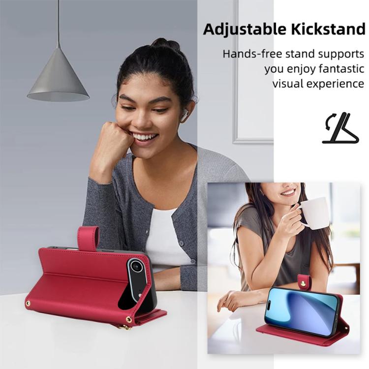 Funda de cuero con siete ranuras para tarjetas y cremallera para iPhone Air con cordón (roja)