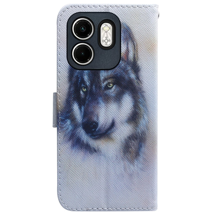 Funda de Cuero con Tapa para Infinix Hot 50I Smart 9 con Dibujo Lobo Blanco