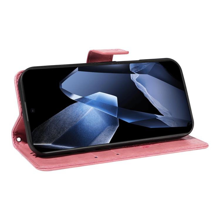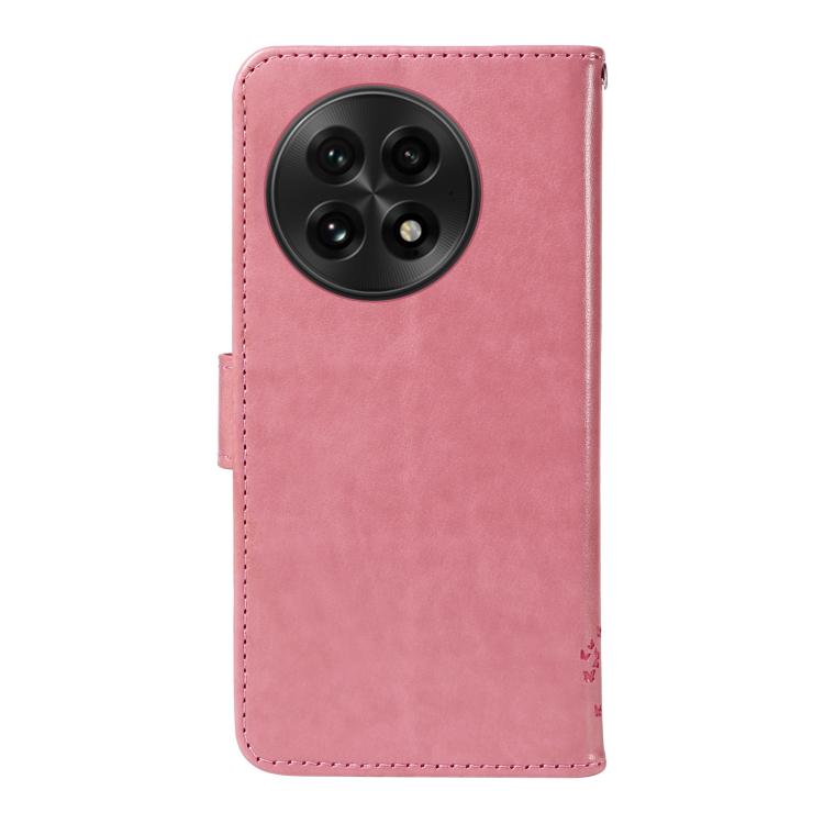 Funda de Cuero con Tapa para OnePlus 13 con Diseño de Árbol y Gato en Relieve (Rosa)