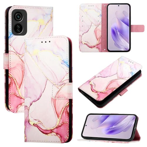 Funda de Cuero con Tapa Diseño Mármol para Tecno Pop 6C Itel A18 Pt003 (Oro Rosa)