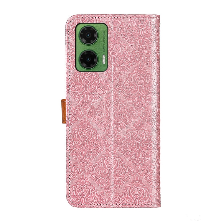 Funda de Cuero con Tapa para Motorola Moto G35 5G con Diseño Floral en Relieve (Rosa)
