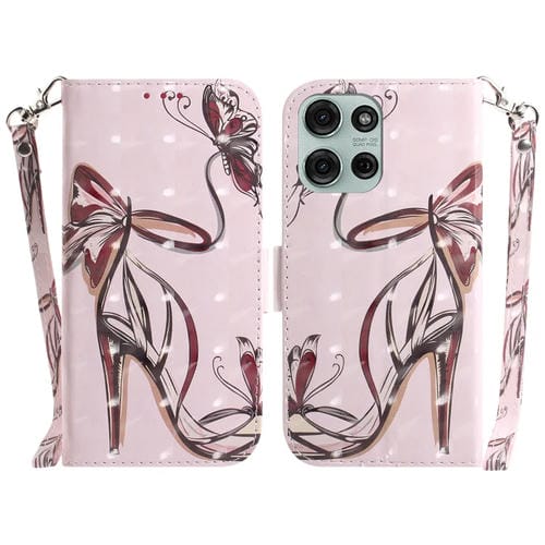 Funda de Cuero con Tapa 3D para Motorola Moto G75 5G (Mariposa de Tacón Alto)