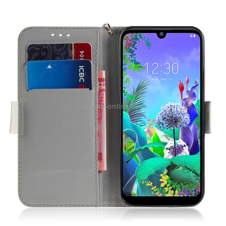 Funda de Cuero con Tapa Horizontal para LG Q60 con Dibujo Flores Acuarela, Soporte y Billetera