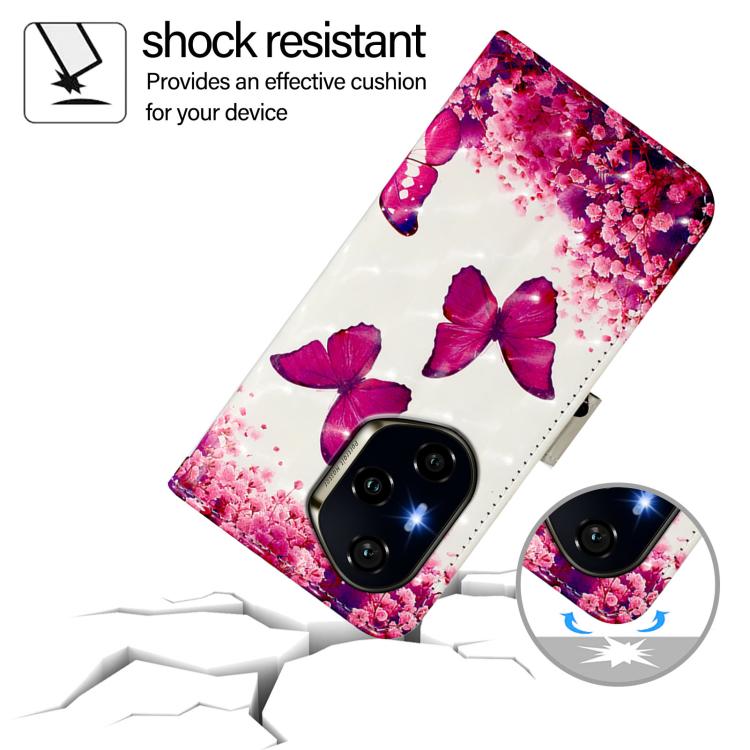 Funda de Cuero con Tapa Horizontal y Pintura 3D para Honor 300 Pro/300 Ultra (Mariposa Rosa)