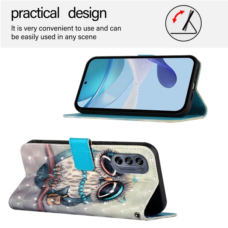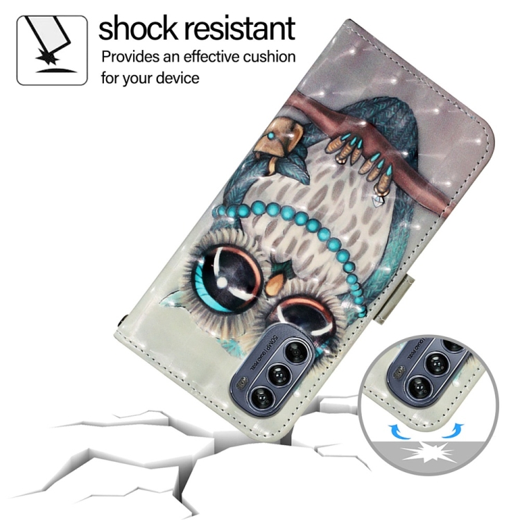 Funda de Cuero con Tapa Horizontal y Pintura 3D para Motorola Moto G62 5G (Búho Gris)