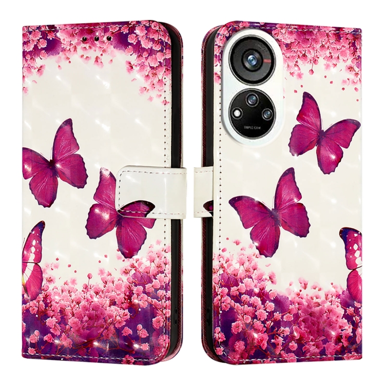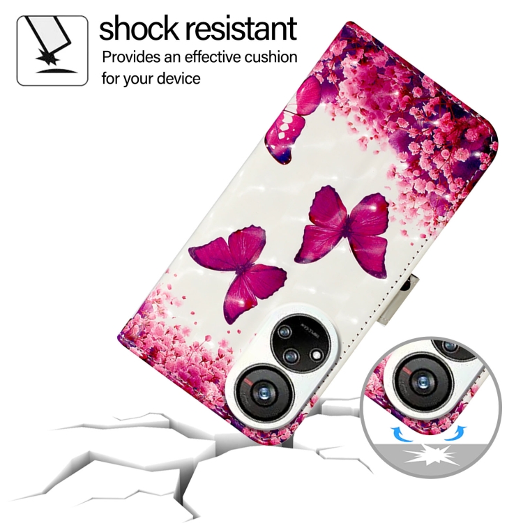 Funda de Cuero con Tapa Horizontal para ZTE Blade V40S con Pintura 3D (Mariposa Rosa)