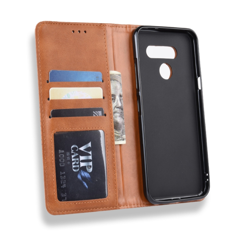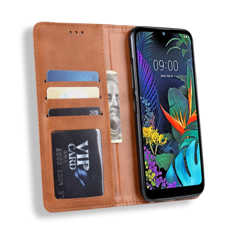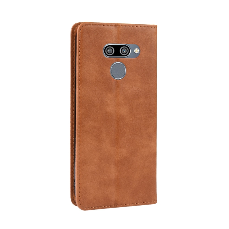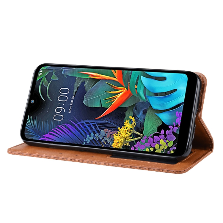 Funda de Cuero con Tapa Horizontal LG K50 / LG Q60 Textura Caballo Loco Retro Hebilla Magnética (Marrón)