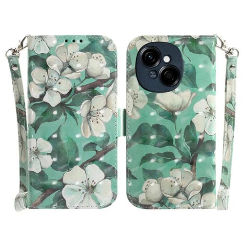 Funda de Cuero con Tapa Horizontal para Tecno Spark Go 1 y Pop 9 Pro (Flor de Acuarela)