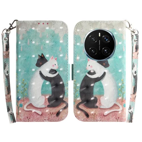 Funda de Cuero con Tapa Horizontal 3D para Honor Magic7 Pro (Gato Blanco y Negro)