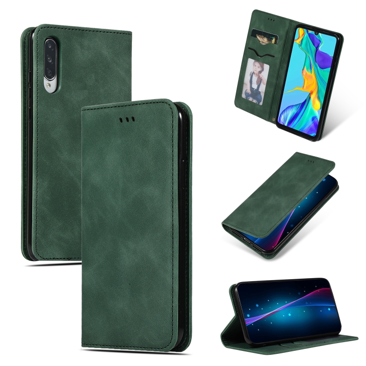 Funda de Cuero con Tapa Horizontal Magnética Retro Skin Feel Business para Huawei P30 (Verde Militar)