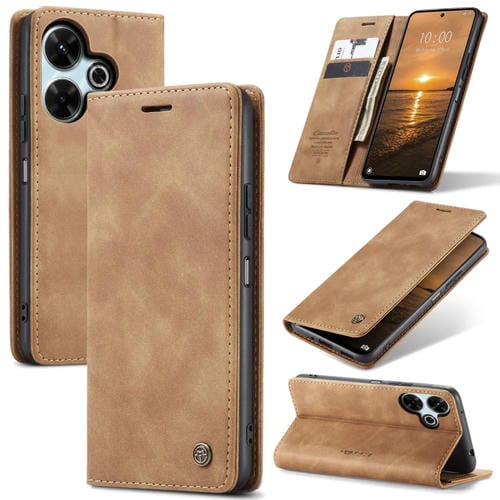 Funda de Cuero con Tapa Horizontal Multifuncional Caseme 013 para Redmi 13 (Marrón)