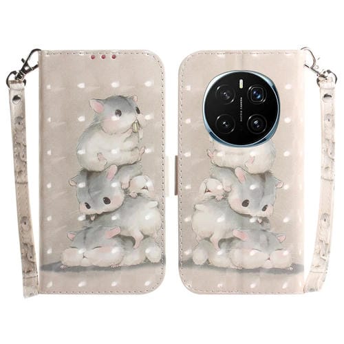 Funda de Cuero con Tapa Horizontal y Diseño 3D para Honor Magic7 Pro (Ardillas)