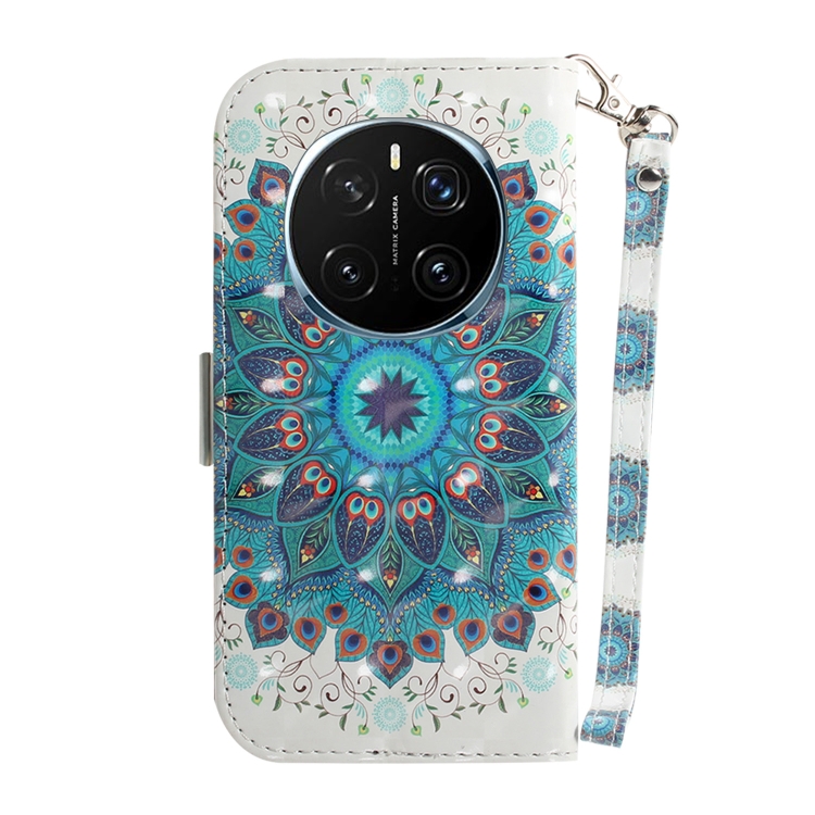 Funda de Cuero con Tapa Horizontal y Diseño 3D para Honor Magic7 Pro (Corona de Pavo Real)