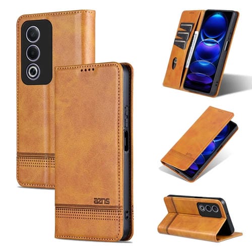 Funda de Cuero con Tapa Magnética con Textura de Piel de Becerro Azns para Oppo A3 Pro 5G Global (Marrón Claro)