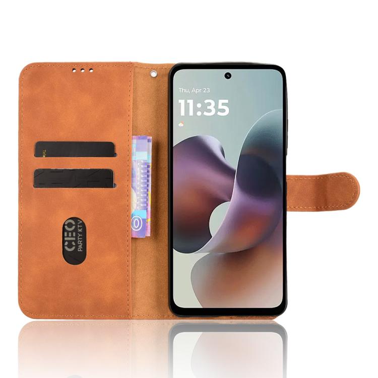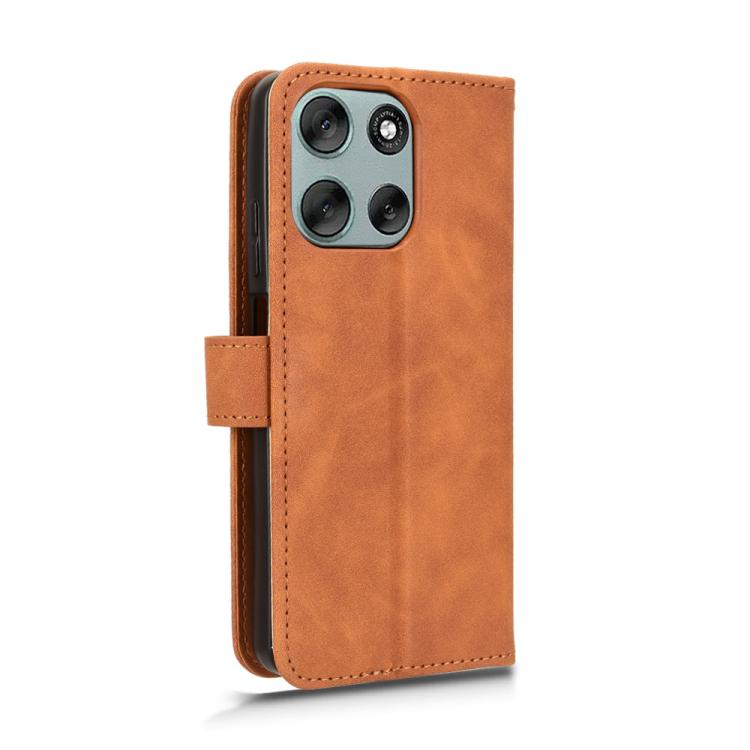 Funda de cuero con tapa magnética y diseño de piel para Motorola Moto G56 5G (marrón)